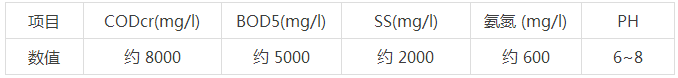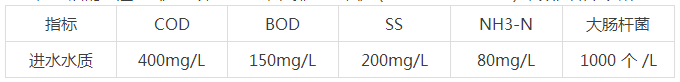 根据养牛场的实测数据,结合经验值,得到养牛场污水进水水质如下表所示: