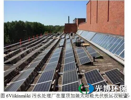 随着赫尔辛基市的人口不断增长,以及废水产量和极端气候现象的增加,全球变暖为污水处理厂带来新的挑战。另外,污水处理厂的现有处理能力逐渐难以满足越来越严格的排放标准,该污水处理厂一直致力于研发与提标改造。此外,提高工厂的能源效率也是未来发展的一个重要目标。图6为污水处理厂在屋顶加装太阳能光伏板回收能量。